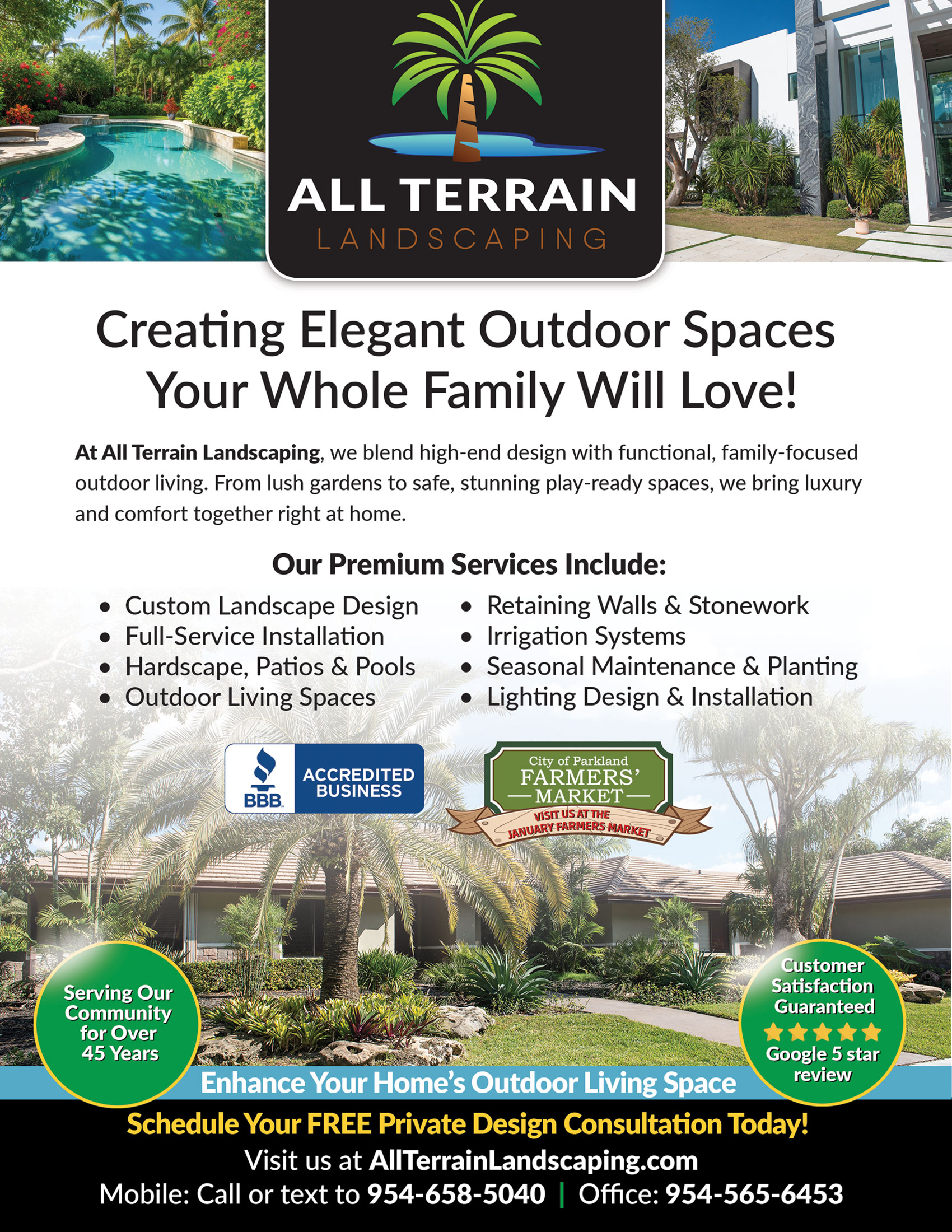 Founded on a passion for horticulture and a commitment to exceptional service, All Terrain Landscaping Inc. has grown to become a trusted name in South Florida landscaping. We understand the unique challenges and opportunities presented by our region’s climate, and we leverage this local expertise to design landscapes that not only look incredible but also thrive year-round.