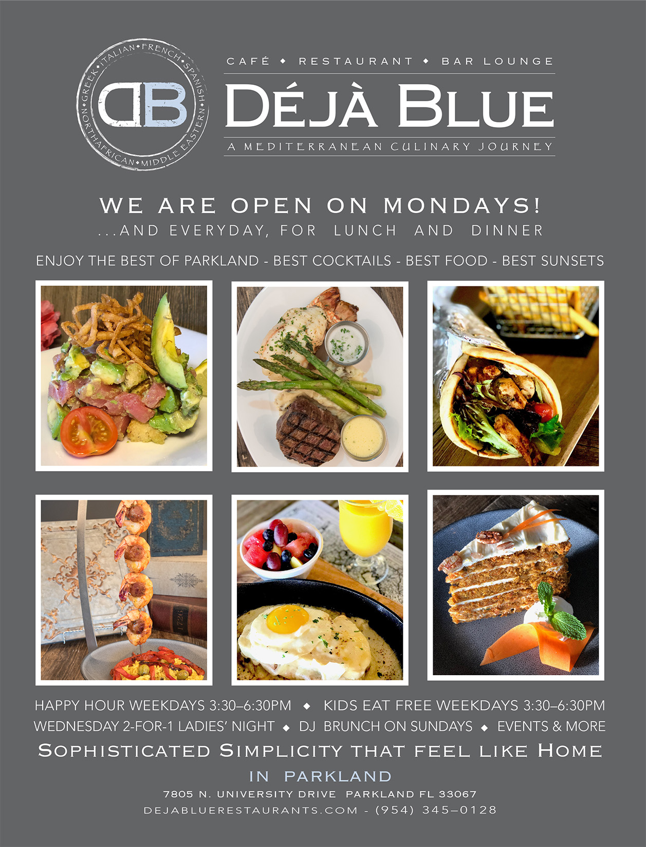 Deja Blue Restaurant Parkland Florida March ad