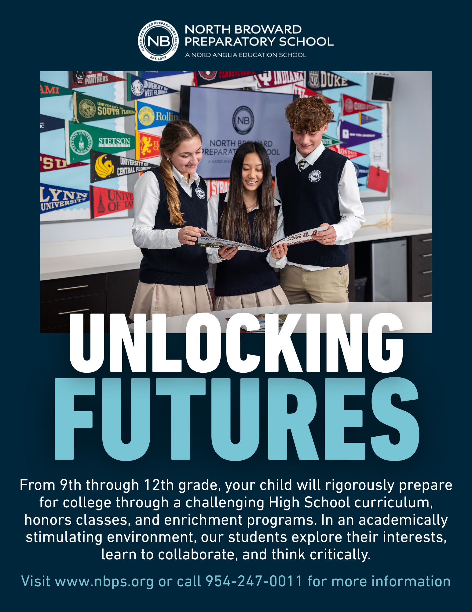 North Broward Preparatory School (NBPS), is a premier PK3 through 12th grade day and boarding school. As a member of Nord Anglia Education, NBPS empowers students through partnerships with world-leading institutions and organizations seamlessly integrated within the curriculum. Our international and innovative approach to education, featuring recognized academic programs, maximizes individual achievement, and helps students discover their passions in a transformative, nurturing environment. The only private school in Broward and Palm Beach County that offers such a high level of collaboration and partnerships, opening a world of possibilities for your child’s future.